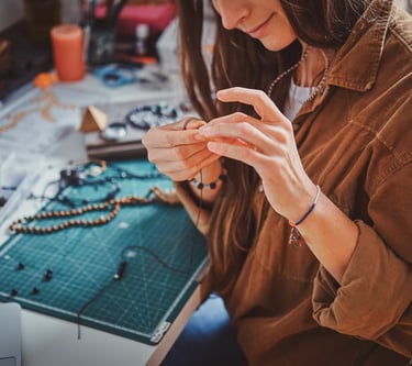 Aprende a crear tu propia joyeria artesanal con piedras naturales en un espacio creativo, cercano y guiado paso a paso.